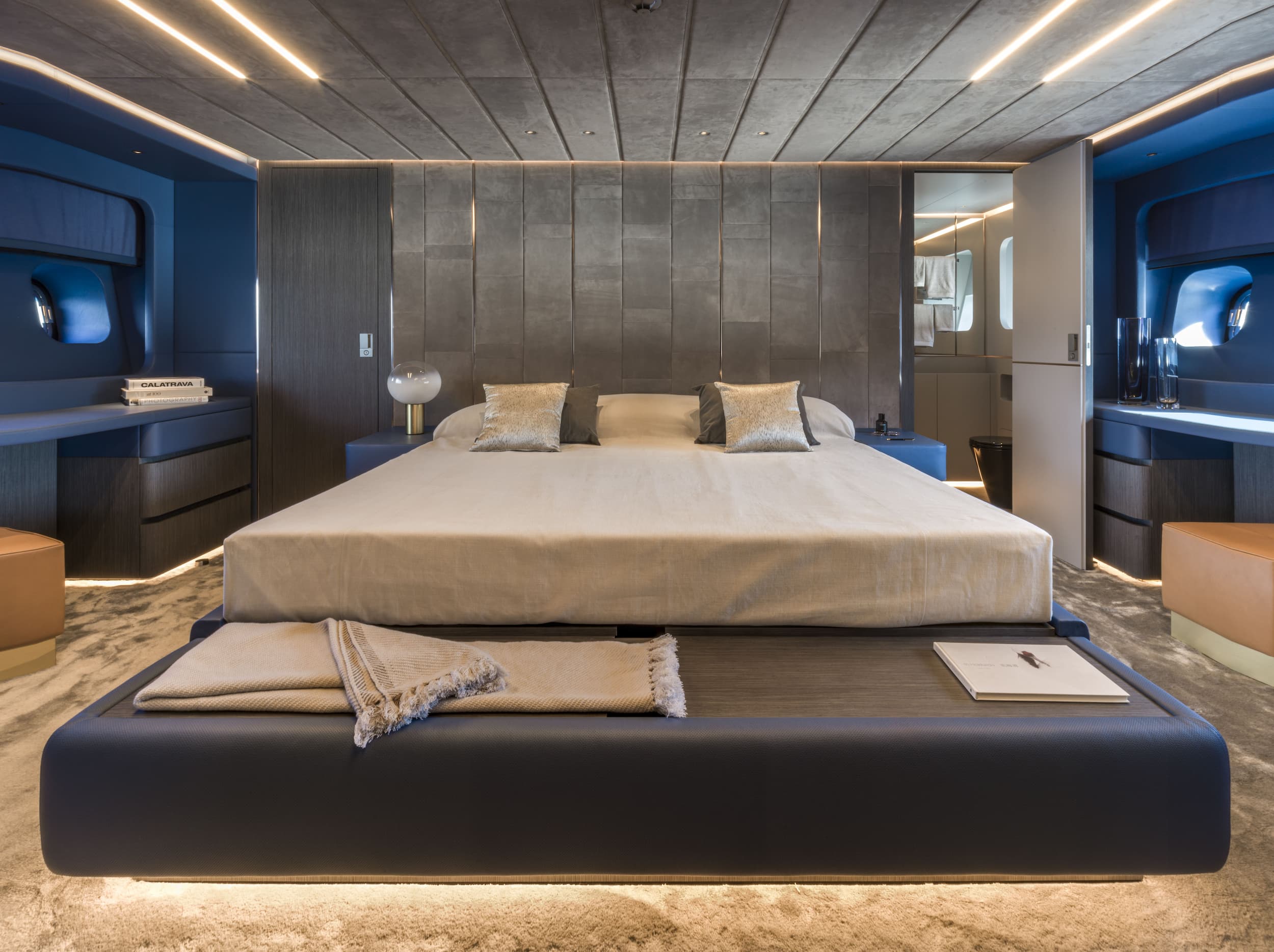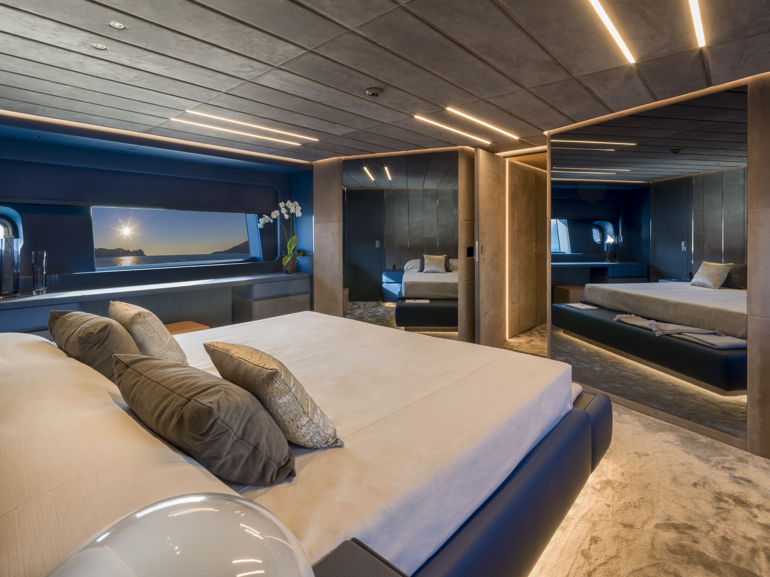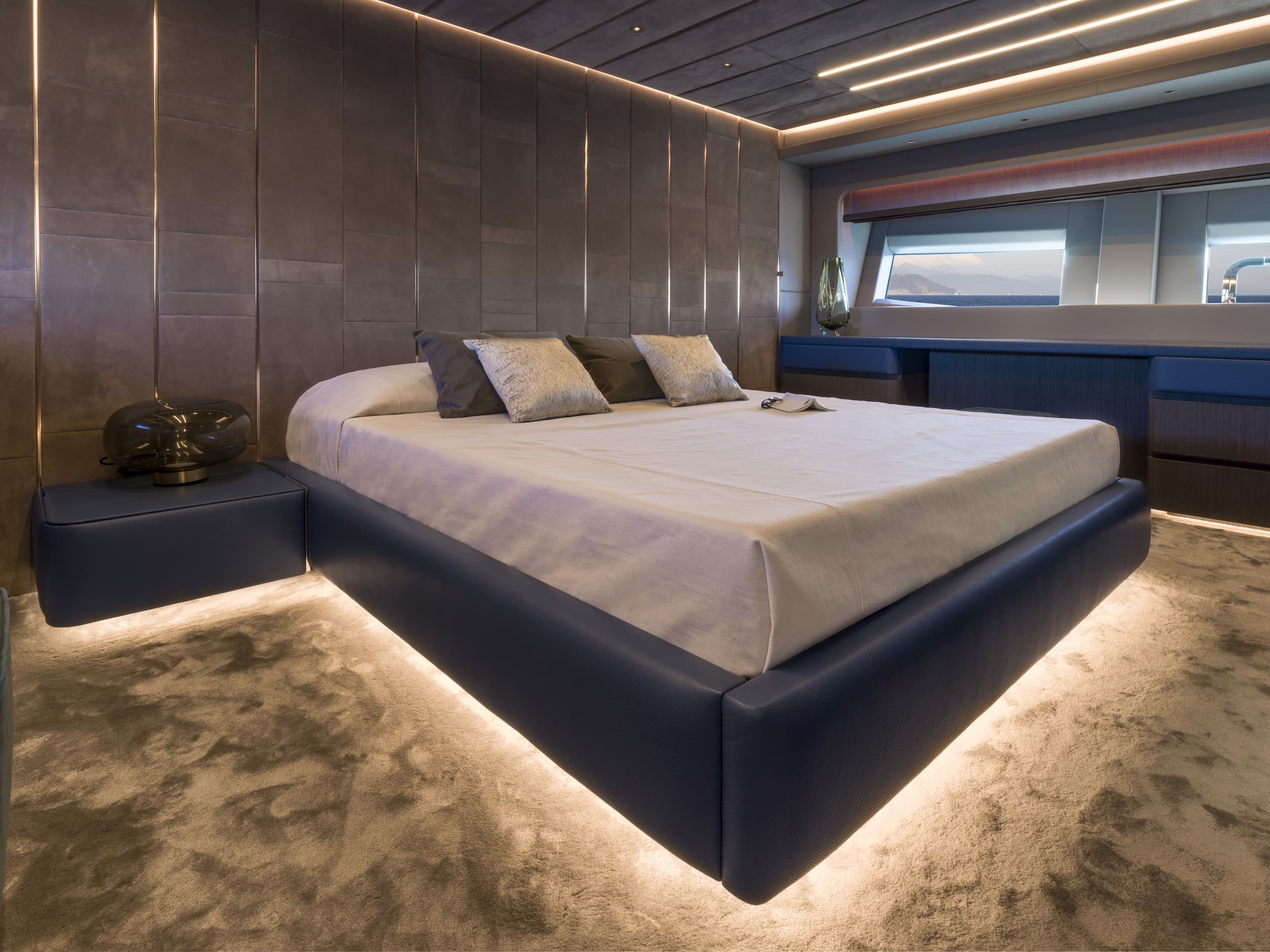 Every AB 110 is a reflection of its owner. The layout below deck is fully customizable, with spacious guest cabins, a private full-beam owner’s suite, and separate crew quarters for discreet service. Whether you’re entertaining guests or enjoying a quiet escape, every element is selected to suit your personal style, from materials to mood lighting. The AB 110 offers bespoke comfort, made to measure.