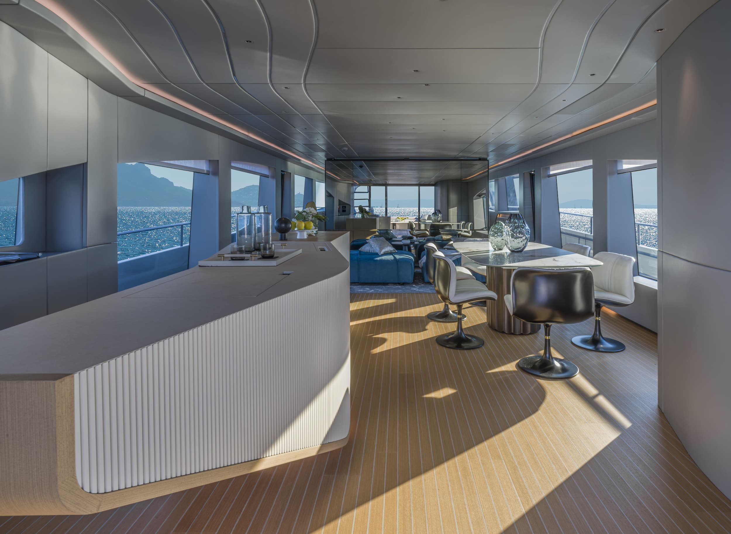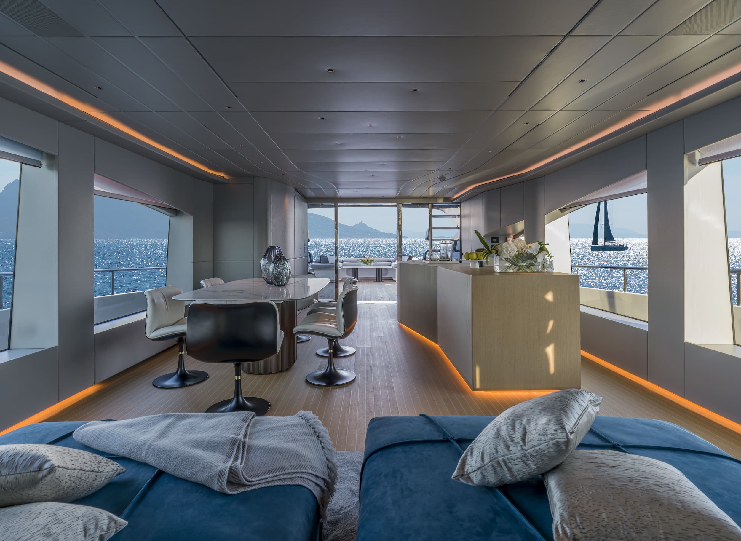 From laid-back lunches to evening celebrations, the AB 110’s expansive sundeck sets the stage for unforgettable moments. With panoramic views, flexible seating, and space to relax or entertain, the sundeck is the yacht’s social heart, and the perfect place to host in style. Whether you're anchored off the coast or cruising at pace, this elevated space invites conversation, connection, and effortless enjoyment.