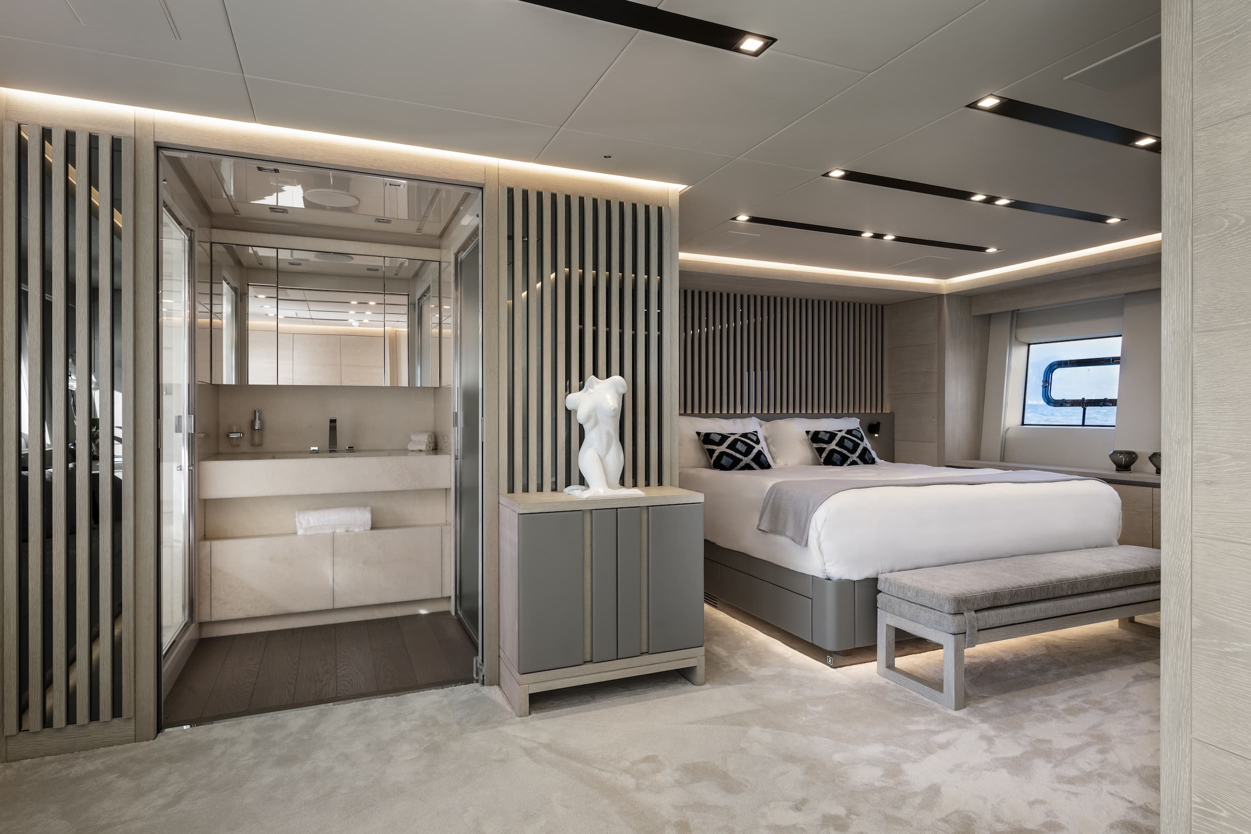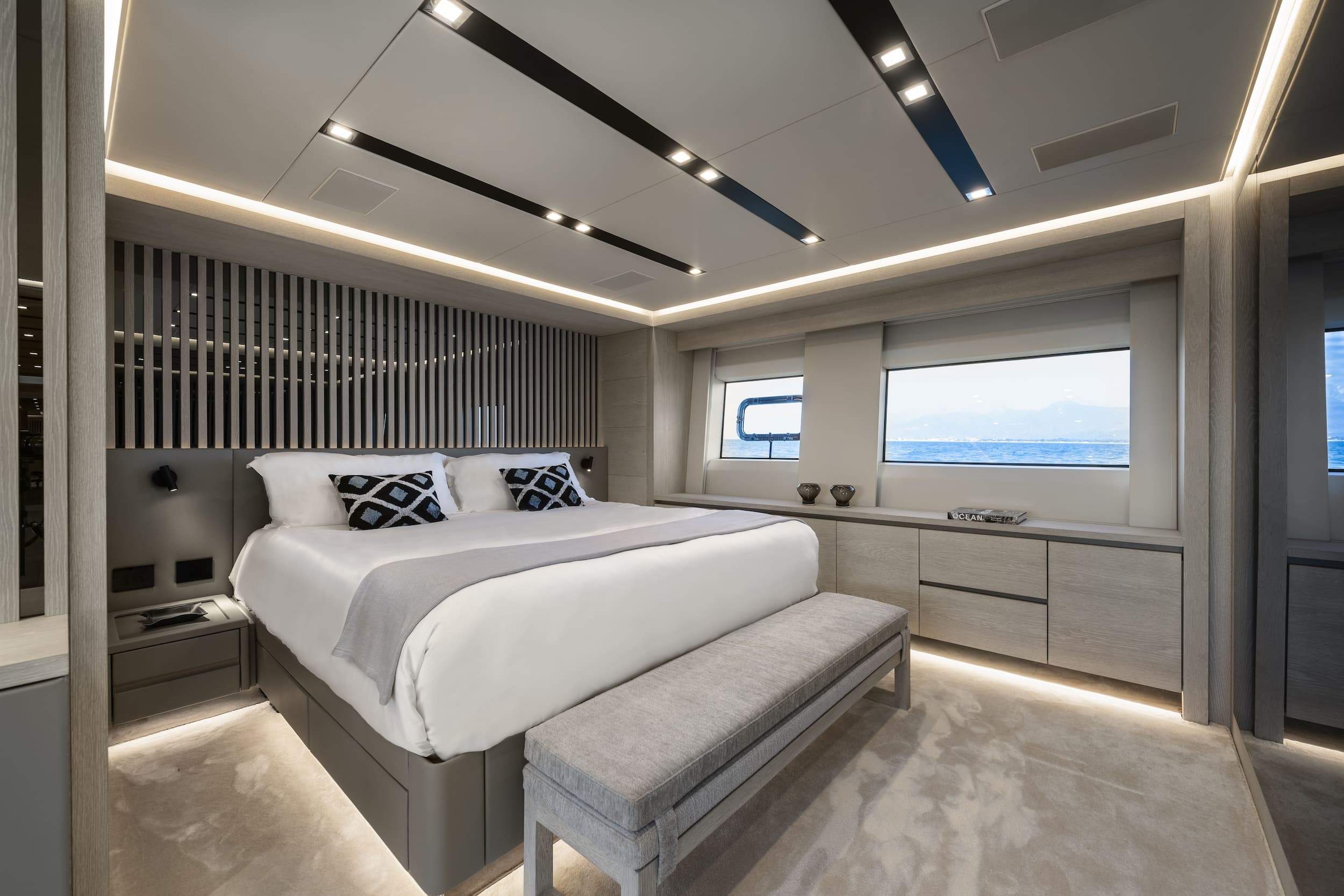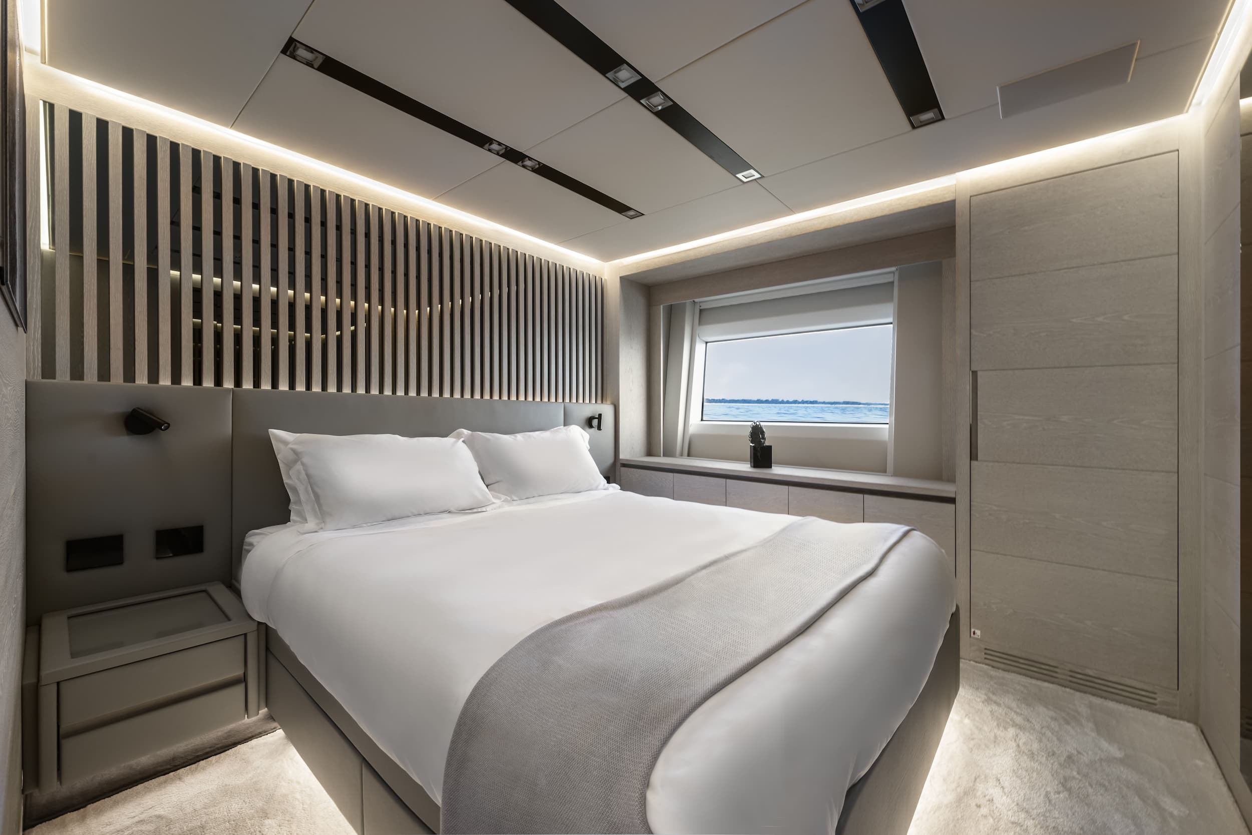 With a wide beam of nearly 8 metres, the AB 130 offers exceptional volume and layout flexibility for her size. The 50-square-metre saloon delivers 360-degree views and connects directly to the aft cockpit and beach area, forming a unified social space of over 100 square metres. Below deck, the layout includes a full-beam owner’s suite, four additional guest cabins, and dedicated crew quarters for up to five. Every detail is designed to maximise space, comfort, and impact.