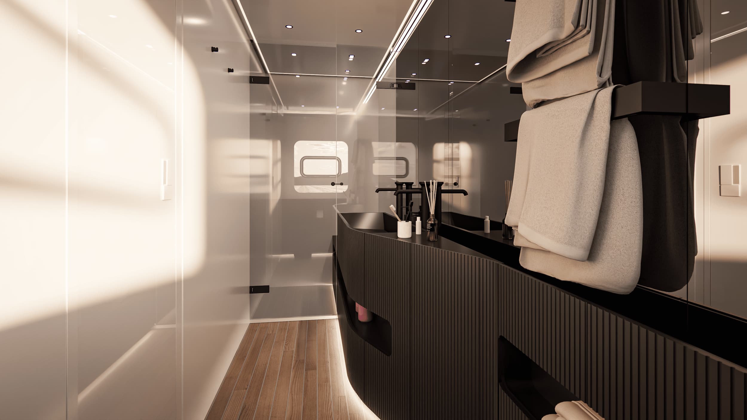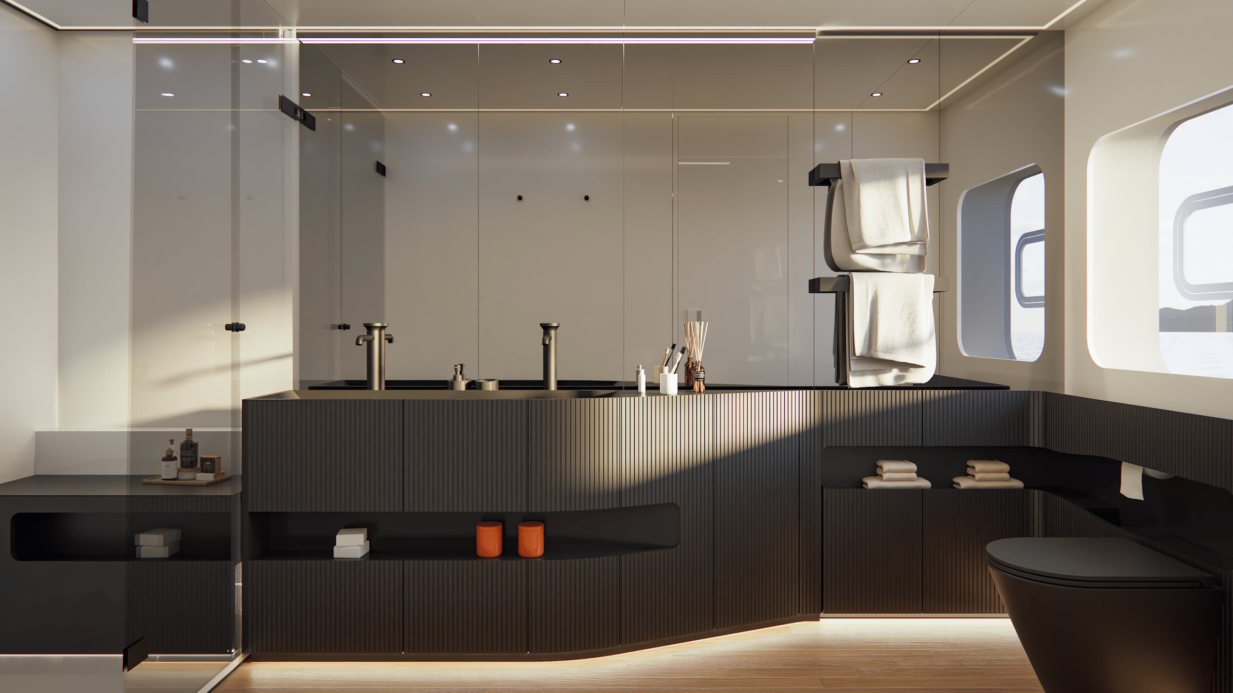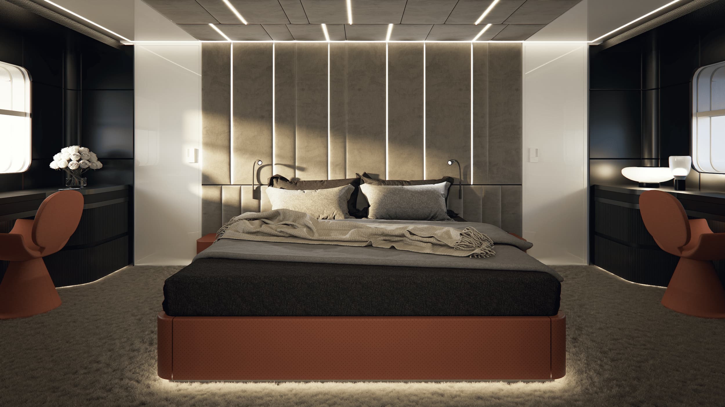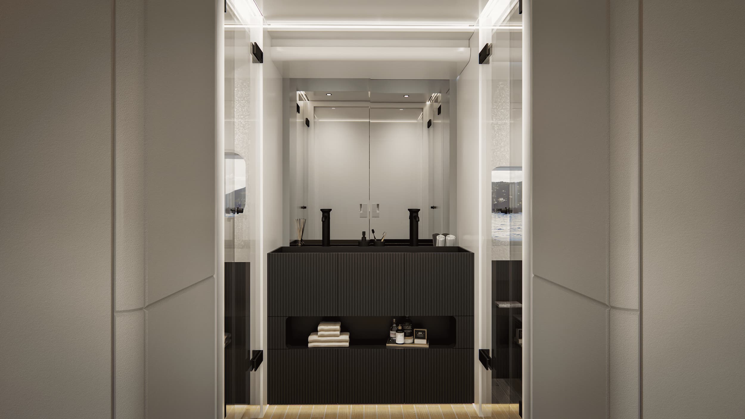 With nearly 30 meters of length, the AB 95 S offers a generous, fully-customizable layout below deck. Four guest cabins provide comfort and privacy for longer cruises, while the dedicated crew area ensures seamless service without intrusion. Every detail, from materials to flow, is designed to balance luxury with function—proving that space and speed can share the same hull.